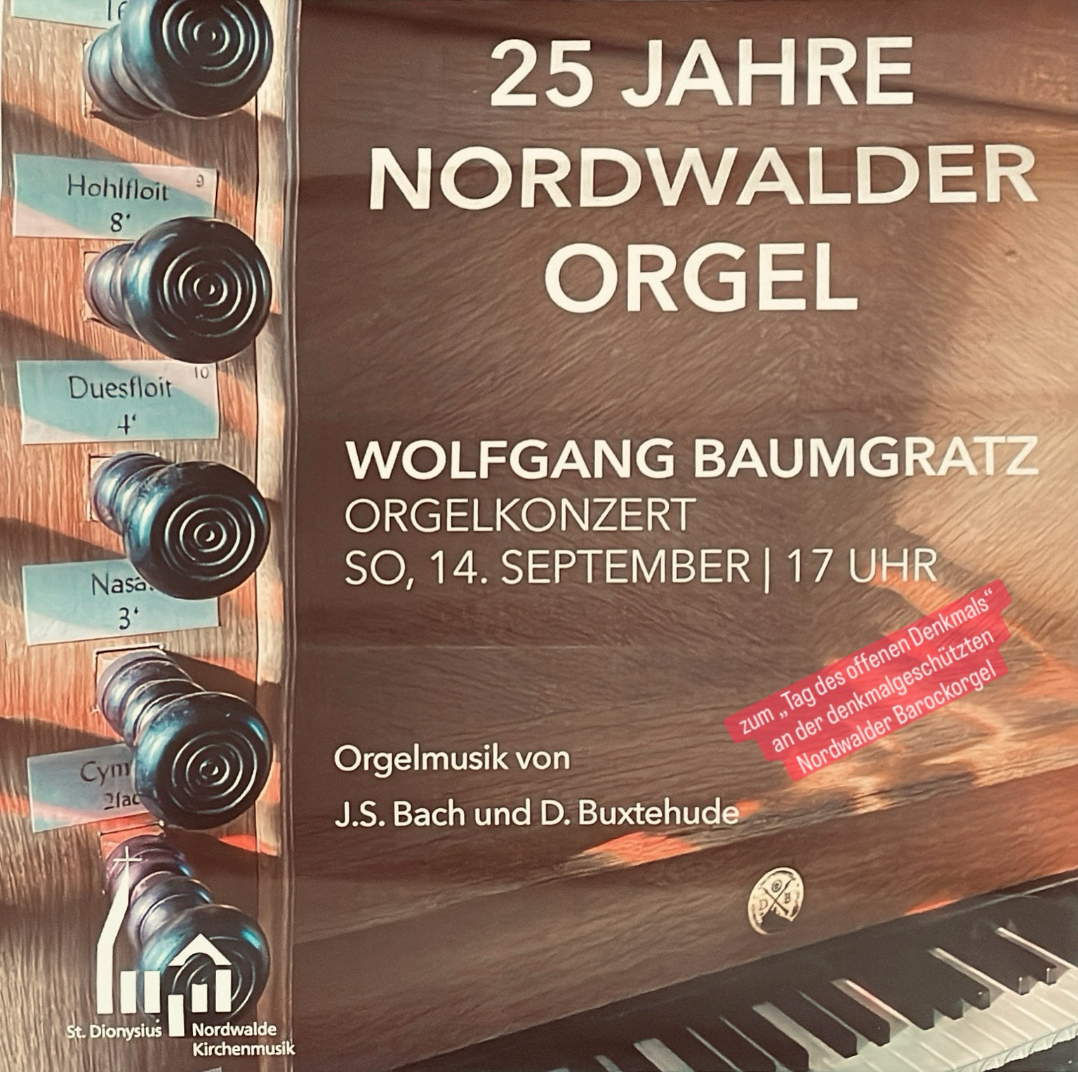 Wir laden ein zum #Orgelkonzert mit Wolfgang Baumgratz an der denkmalgeschützten Nordwalder Barockorgel (Mencke/Bensmann) zum „Tag des offenen Denkmals“ am 14. September.