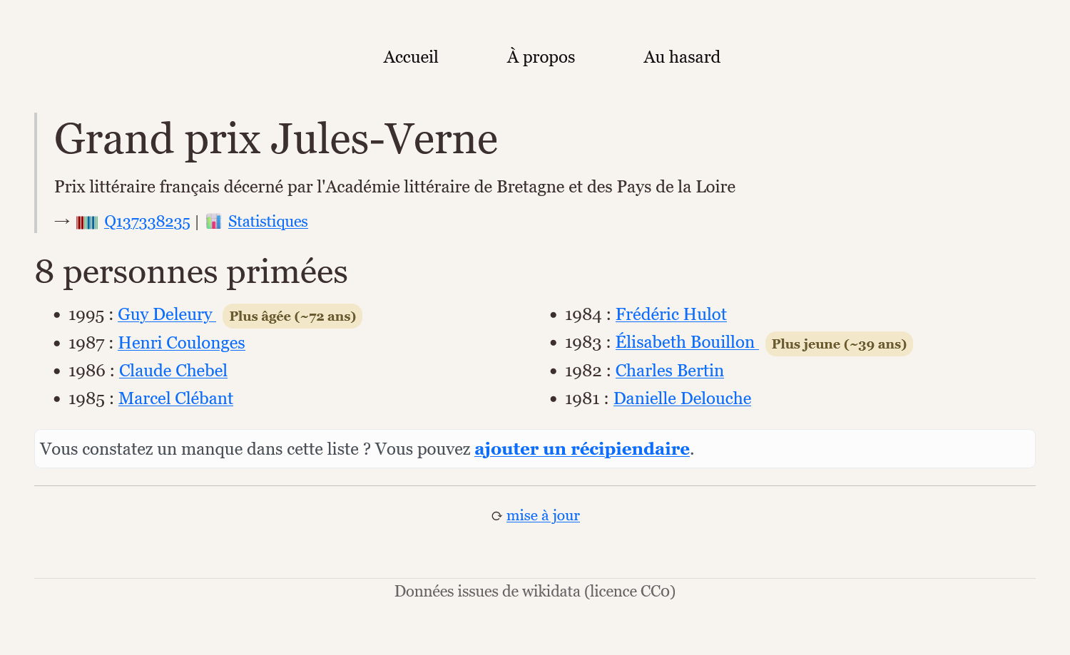 J'ai l'impression que le lien vers la page projet Wikidata depuis prixlittéraires.fr ne fonctionne pas (je l'ai retrouvé par ailleurs néanmoins)