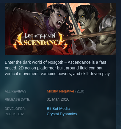 Porzuconej serii Legacy of Kain z otwartym zakończeniem, bo twórcy poszli klepać tomb rajdery.