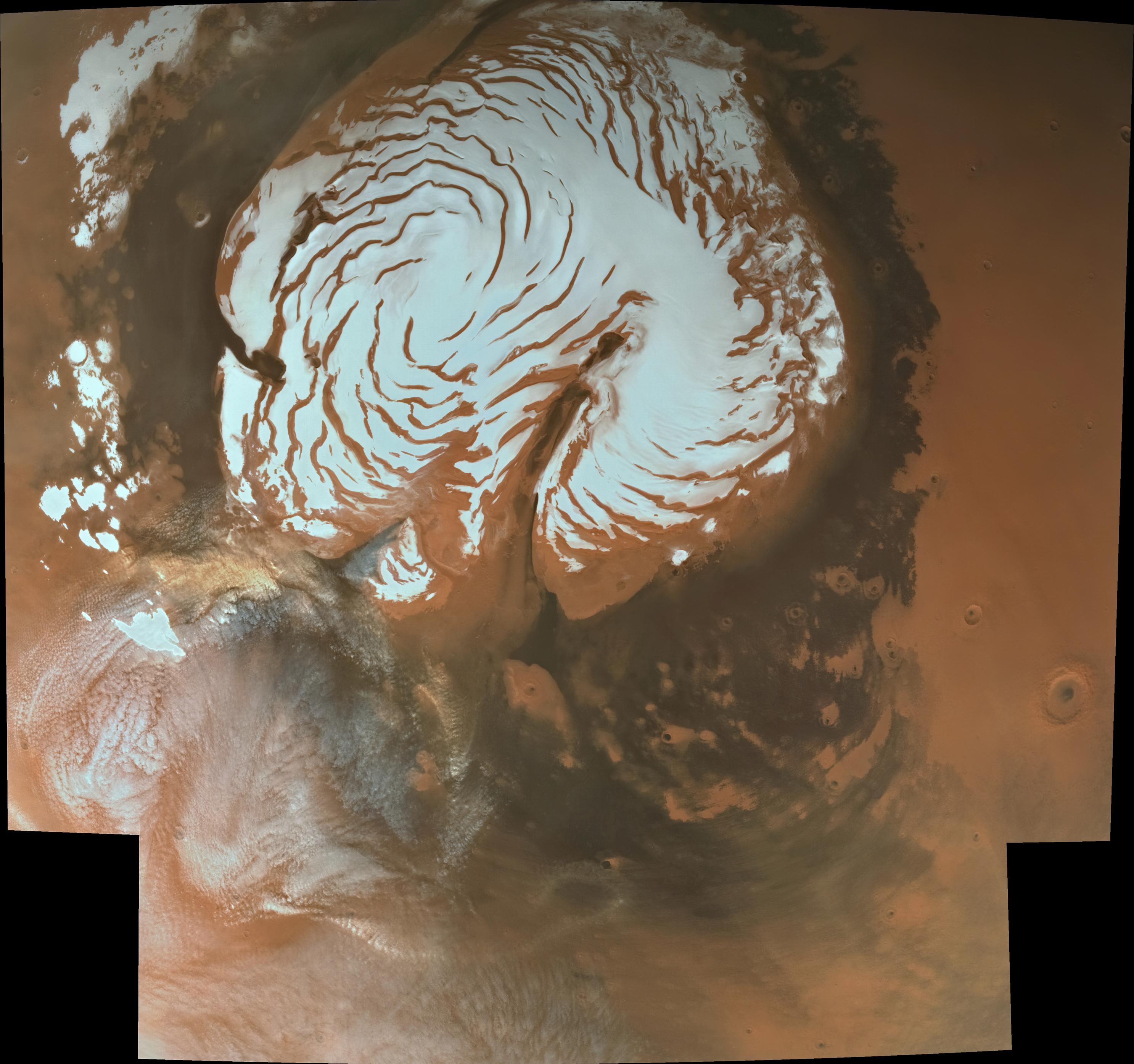 CNSA’s Tianwen-1 mission has recently released new images of Mars, including this view of the north polar cap showing a very cool cloud formation.