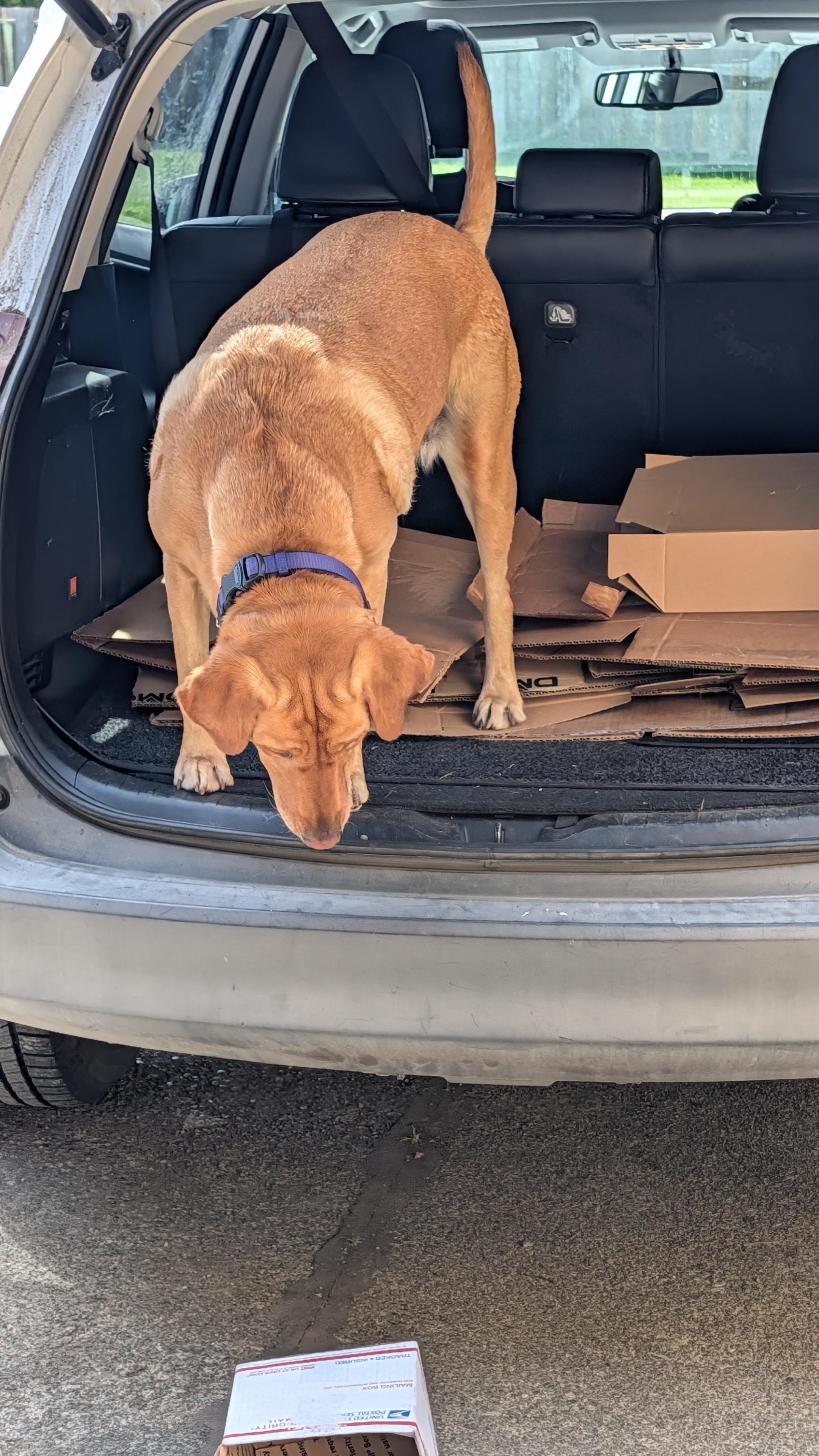I am thinking about it while we break down the cardboard to recycle. She probably doesn't need more treats.
