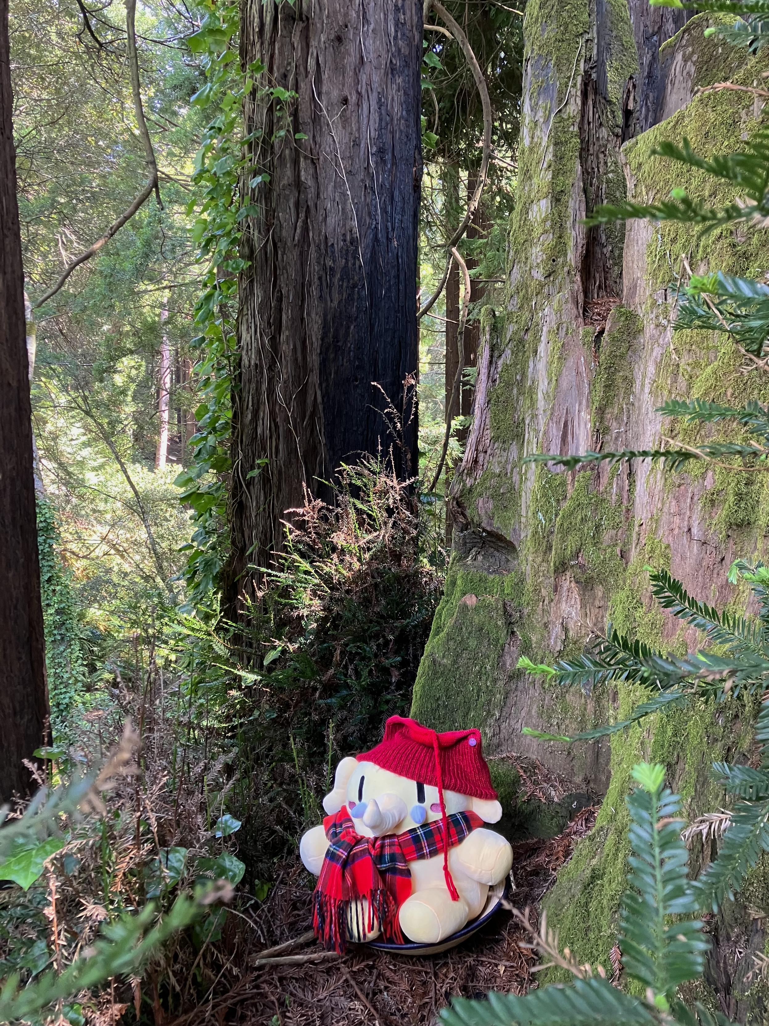 Time for some forest bathing, says Joy Mastodon, to prepare for the work ahead of us. Lots of work ahead of us. #plushtodon