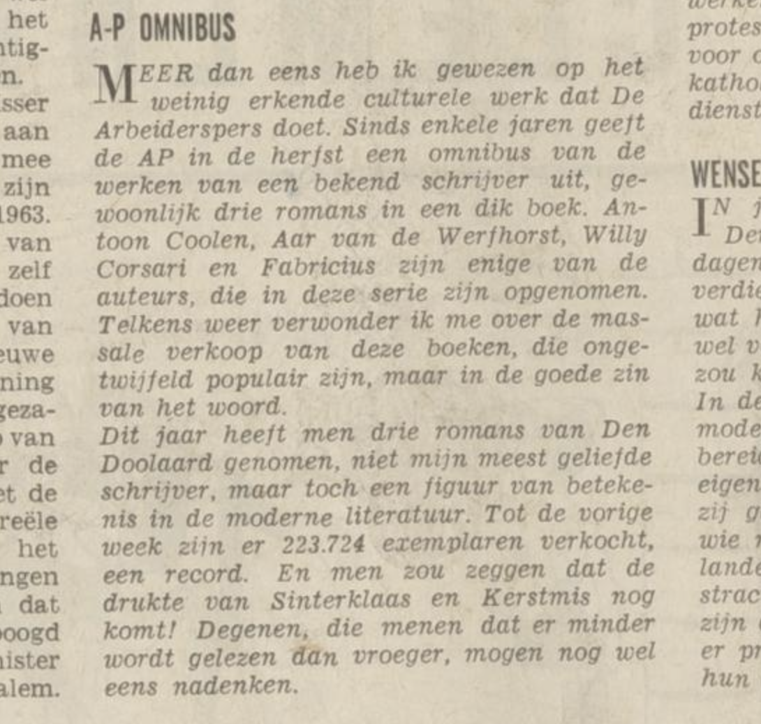 Record-oplage voor een omnibus van De Arbeiderspers voor A. den Doolaard