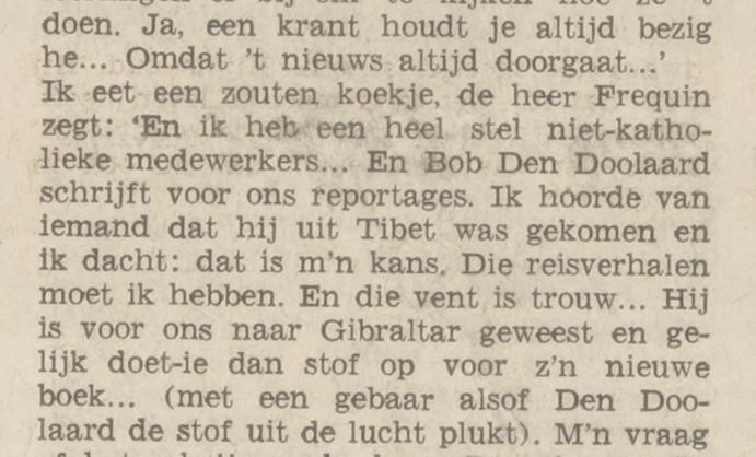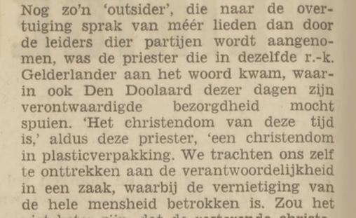 "... priester die in dezelfde r.-k. Gelderlander aan het woord kwam, waarin ook Den Doolaard dezer dagen zijn verontwaardigde bezorgdheid mocht spuien."