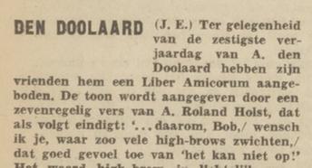 'een pacifistisch en dus gewraakt stuk van A. den Doolaard'