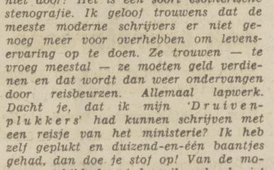 "Dacht je, dat ik mijn ‘Druivenplukkers’ had kunnen schrijven met een reisje van het ministerie?"