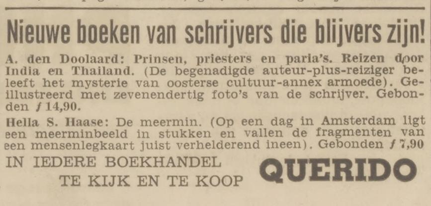 Advertentie voor A. den Doolaards Prinsen, priesters en paria's in Vrij Nederland, 1 december 1962