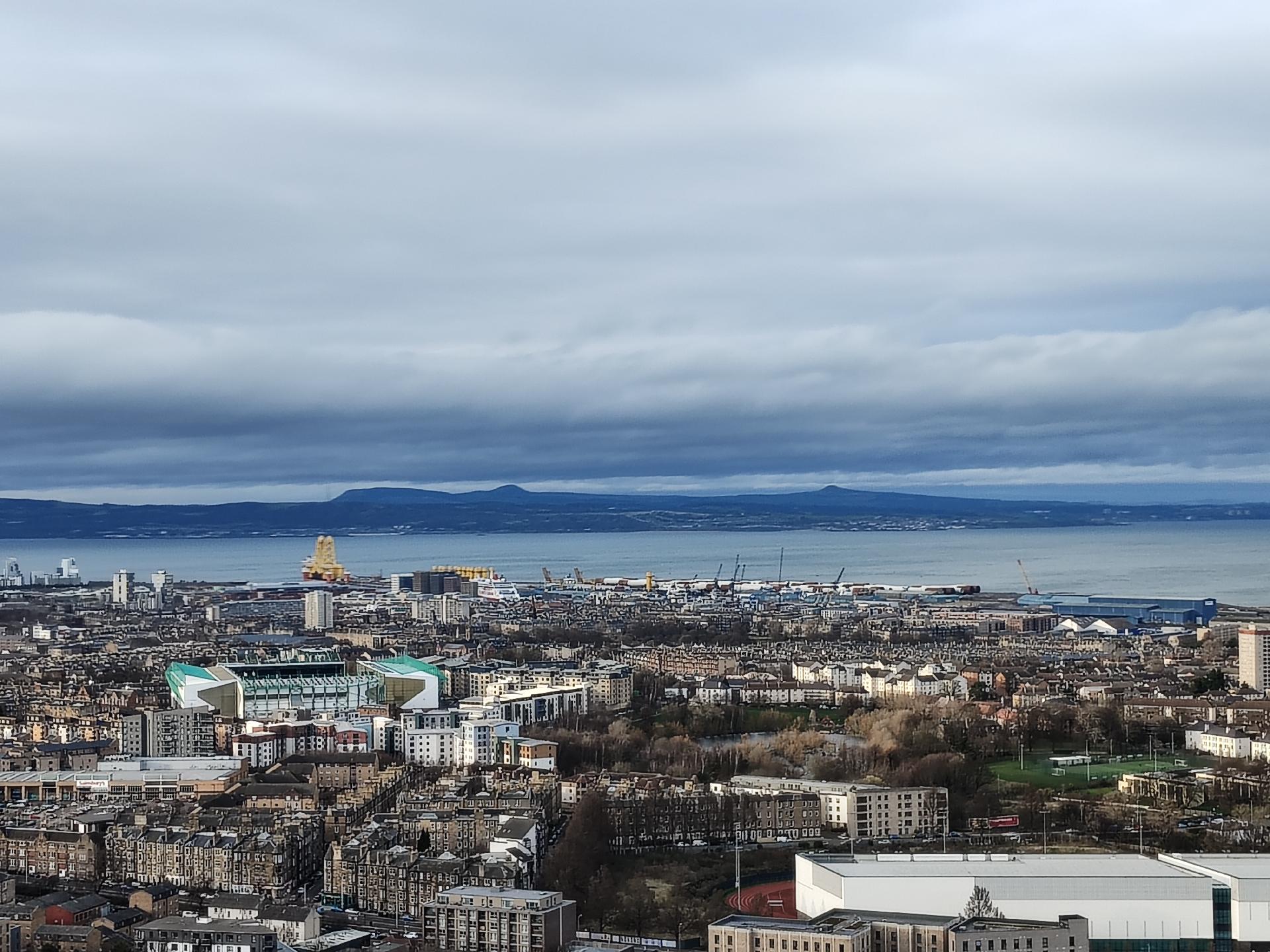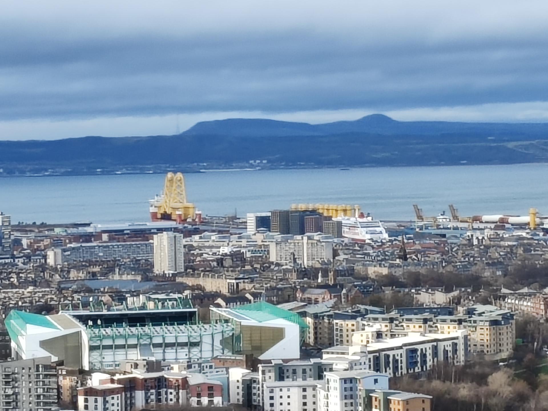 No cycling today as I've got cold. But did climb the nearby hill with my daughter. Crazy windy up there! Interesting activity in the harbour where there's a big ship with towers and wind turbine towers ready for the wind farm being built nearby out at sea.