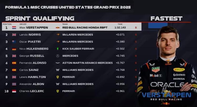 Red Bull's Max Verstappen wins the United States Grand Prix sprint race from pole position!