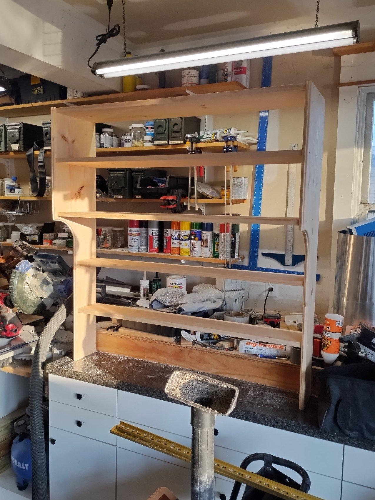 Anyway, started slapping together a hutch to go over the top of the small workbench iny shack, to make better use of the space.