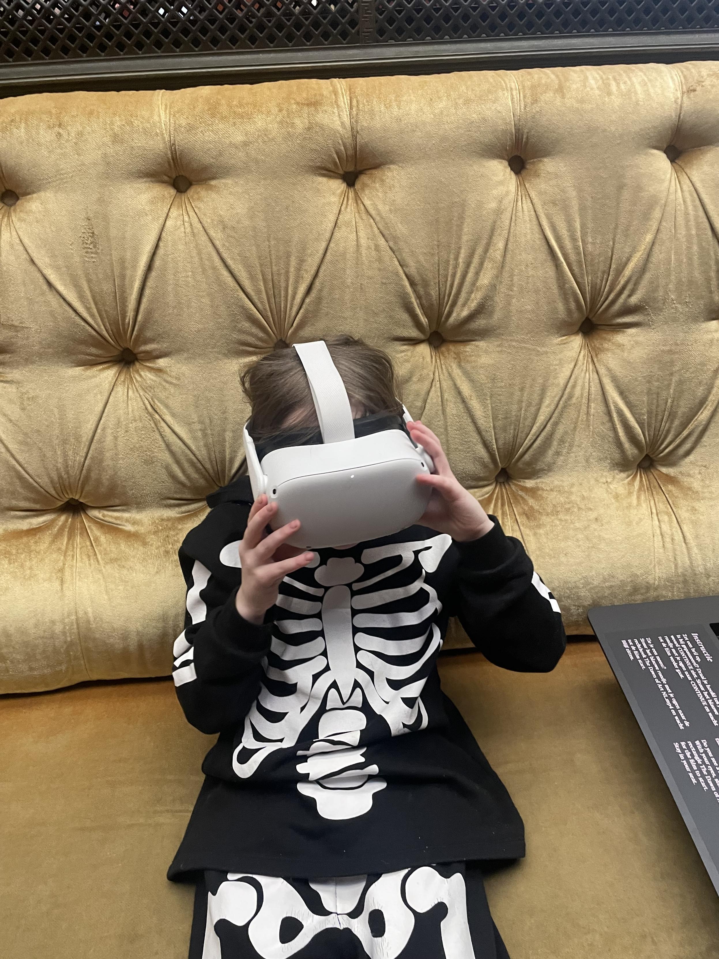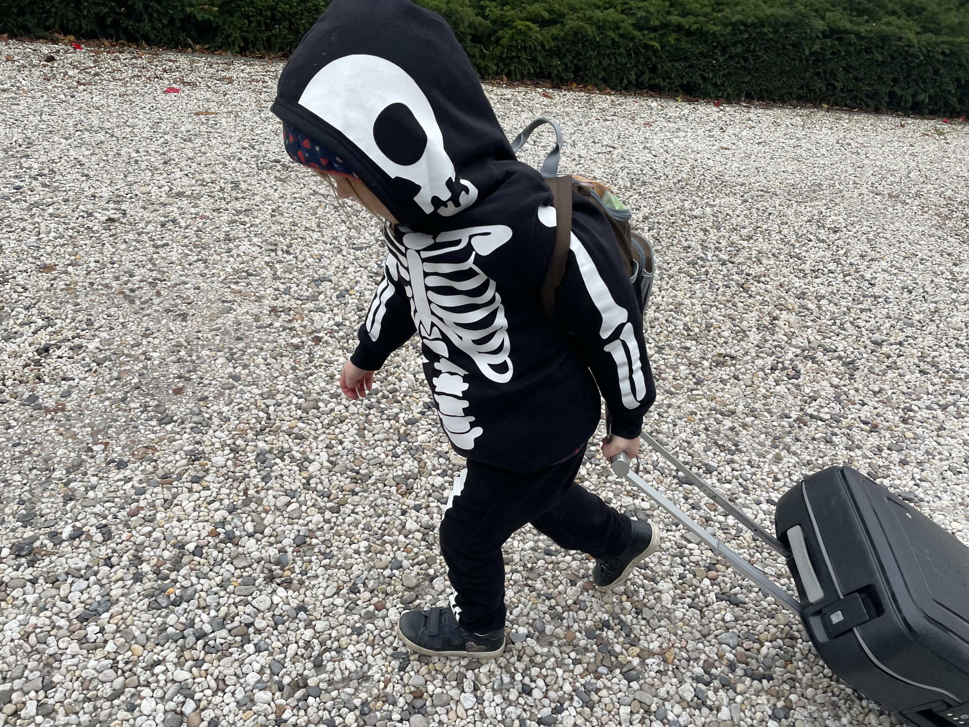 Het is inmiddels haar derde skelettenpak en ze draagt het ook bij uitjes en verjaardagen 😀