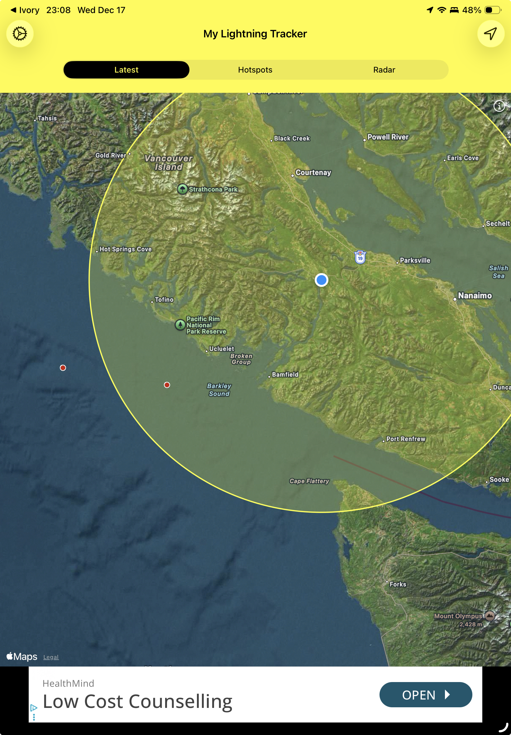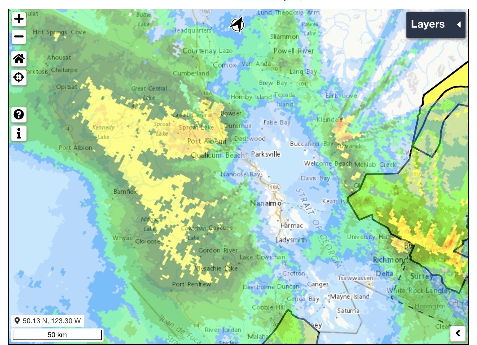 Unfortunately my rain gauge seems to be on the fritz... however, reports from weather friends in #PortAlberni are that they are nearing 110mm over the past 24 hours. The Airport measured 42mm for the 14th. I would expect more than that today.