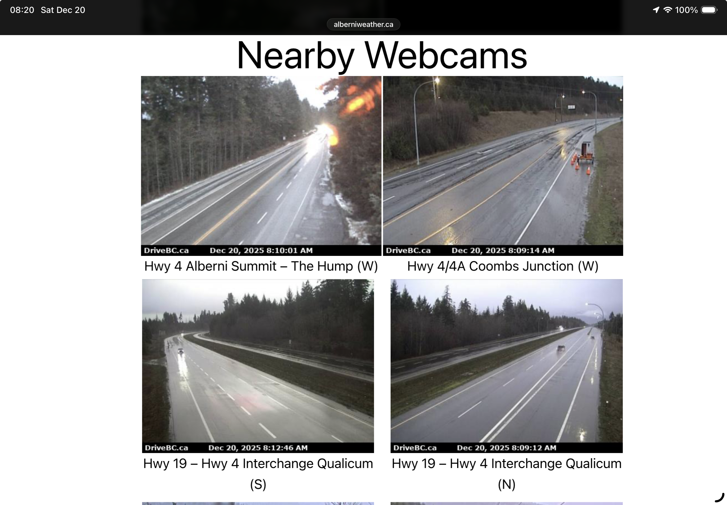 You can find local webcams and drivebc cams quickly on the webcam page at Alberniweather.