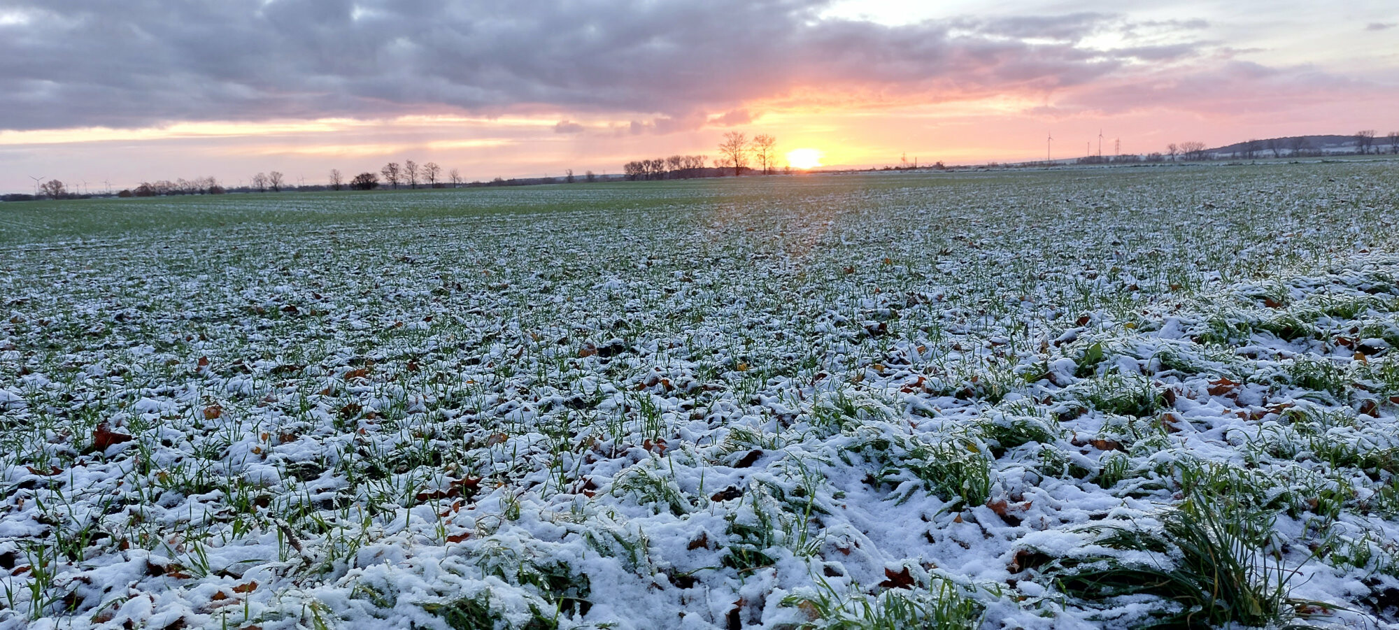 #Sonnenaufgang in #Wachow mit Blick über die Felder nach #Ketzin – mit #Schnee in den #Advent