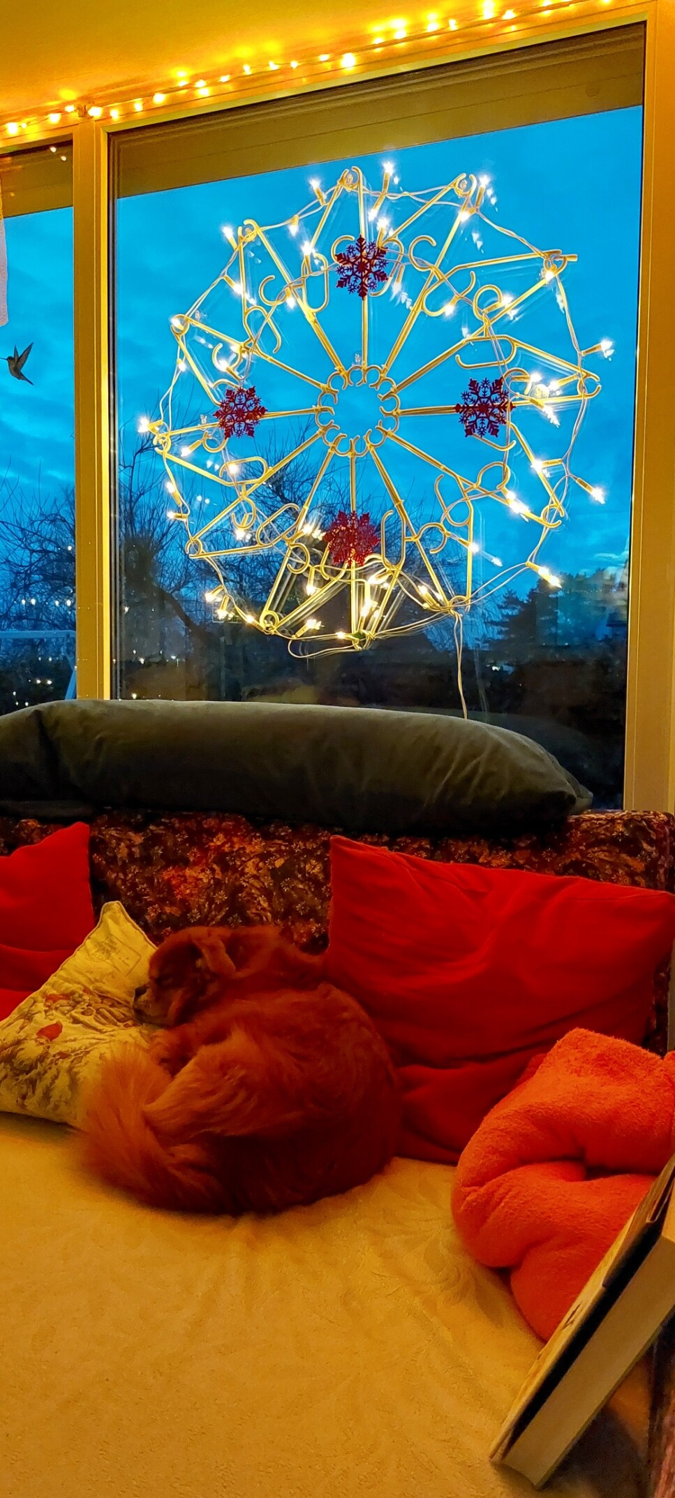 Das ist doch wunderbar, die Landschaft ist weiss überpudert und die Temperatur knapp unter Null. Da komme ich in die richtige Stimmung, um die Adventsbeleuchtung anzubringen.