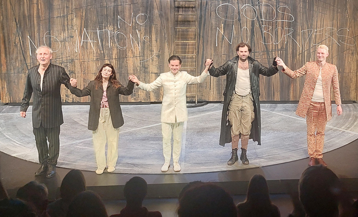 Die muntere #Lessing Interpretation „Nathans Kinder” im Hans Otto #Theater #Potsdam war intensiv, begeisterte die jugendlichen Zuschauer. Das Maschinengewehr als Schwert irritiert mich. Aber insgesamt finde ich die Transformation in das Heute sehr gelungen. Herrlich, wie der Sultan auf die oriental dance music moved. Und so wichtig, dass der christliche Kreuzritter den Juden Nathan verteidigt. Gott 😀 sei Dank habe ich noch die letzte Aufführung erwischt.